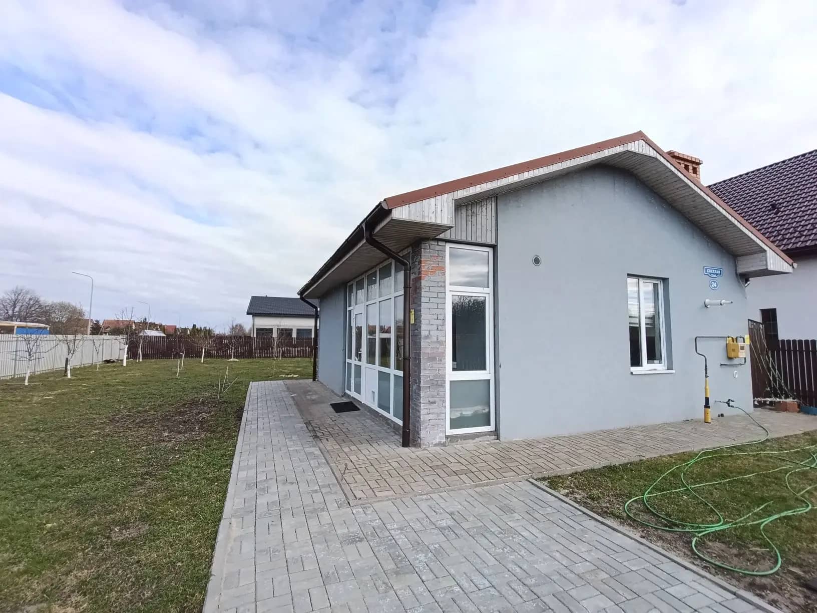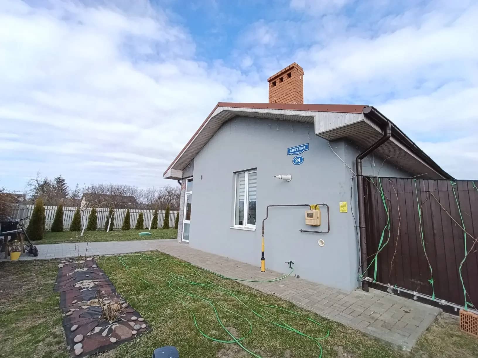 Коммуникации надёжные: газовое отопление, электричество, собственная скважина и септик. Вокруг дома уложена тротуарная плитка, предусмотрена парковка за территорией, подъезд — асфальтированный.